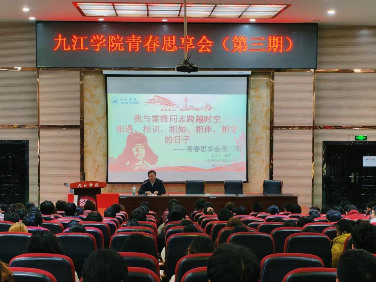 为深入传承雷锋精神,厚植青年学子家国情怀,引导广大青年以榜样为镜、向标杆看齐,3月5日下午,九江学院青春思享会第三期如期举行。活动特别邀请全国优秀团干部、中国石化九江分公司团委书记杨宇,以《我与雷锋同志跨越时空相遇、相识、相知、相伴、相守的日子》为题,为全校青年学子代表带来了一场兼具温度与深度的精神盛宴,让雷锋精神在新时代青年心中落地生根、薪火相传。杨宇书记深耕青年志愿与团工作多年,曾获中国青年志愿者优秀个人奖,用实际行动践行雷锋精神,传递青春担当。