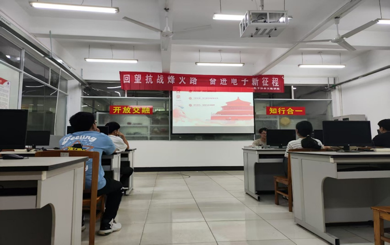 9月24日,电子协会以"回望抗战烽火路,奋进电子新征程"为主题,通过多媒体展演、实物模型展示与青年对话等形式,生动再现抗战时期科技救国的峥嵘岁月,激励学子将历史智慧转化为科技创新动能。活动现场,百余名师生穿梭于历史长廊与现代科技之间,在触摸铁皮发报机的锈痕中感受先辈智慧,在调试智能车电路板上领悟科技报国真谛。