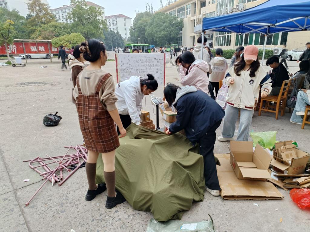 为营造绿色环境,传播绿色文明,2025年10月26日,九江学院方舟生态协会在三食堂广场顺利开展“叮当项目”环保公益活动。本次活动以“废旧回收,绿色同行”为主题,通过创新的积分兑换机制,鼓励同学们将塑料瓶、快递纸盒等可回收物带到现场进行回收,在践行垃圾分类的同时参与公益行动。