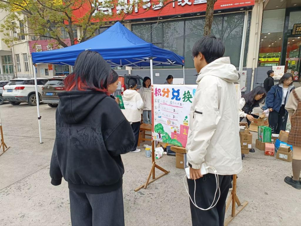 活动前期,协会成员已完成场地布置,醒目的宣传展板与分类回收区迅速吸引了过往同学的驻足。活动中,志愿者们分工协作,有的负责讲解回收流程与环保意义,有的专注于可回收物的分类称重,有的则为参与同学兑换环保袋、绿植等实用礼品。随着下课人流高峰的到来,现场参与热度持续攀升,不少同学结伴而来,手提袋装的可回收物有序排队,形成了一道独特的校园绿色风景线。