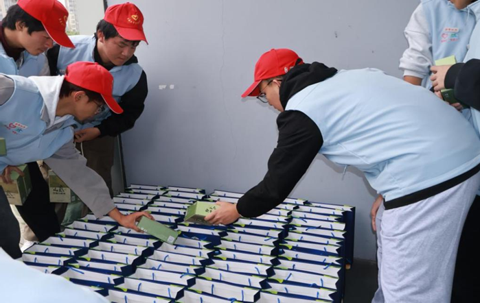 赛前,主办方围绕赛事流程、服务规范、应急处置开展专项培训,全方位提升志愿者专业能力。每场赛事,志愿者都迎着晨光到岗,开始完成伴手礼分类装袋、清点核对,确保物资无误后有序分发;分配整理好应援棒,在观众通道微笑递送。从早到晚长时间的高速服务运转让汗水浸湿志愿服,但是他们始终坚守服务前线,筑牢赛事保障的“第一道防线”。