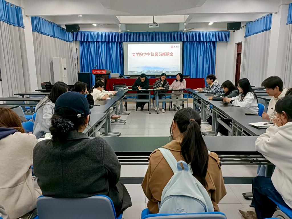 10月27日,2025—2026秋季学期期学生信息员座谈会在文友楼204召开,文学院副院长程亚恒、副院长吴雯雯出席会议,教学科研管理科负责人、专业负责人与各年级各专业学生信息员30余人参加座谈会。